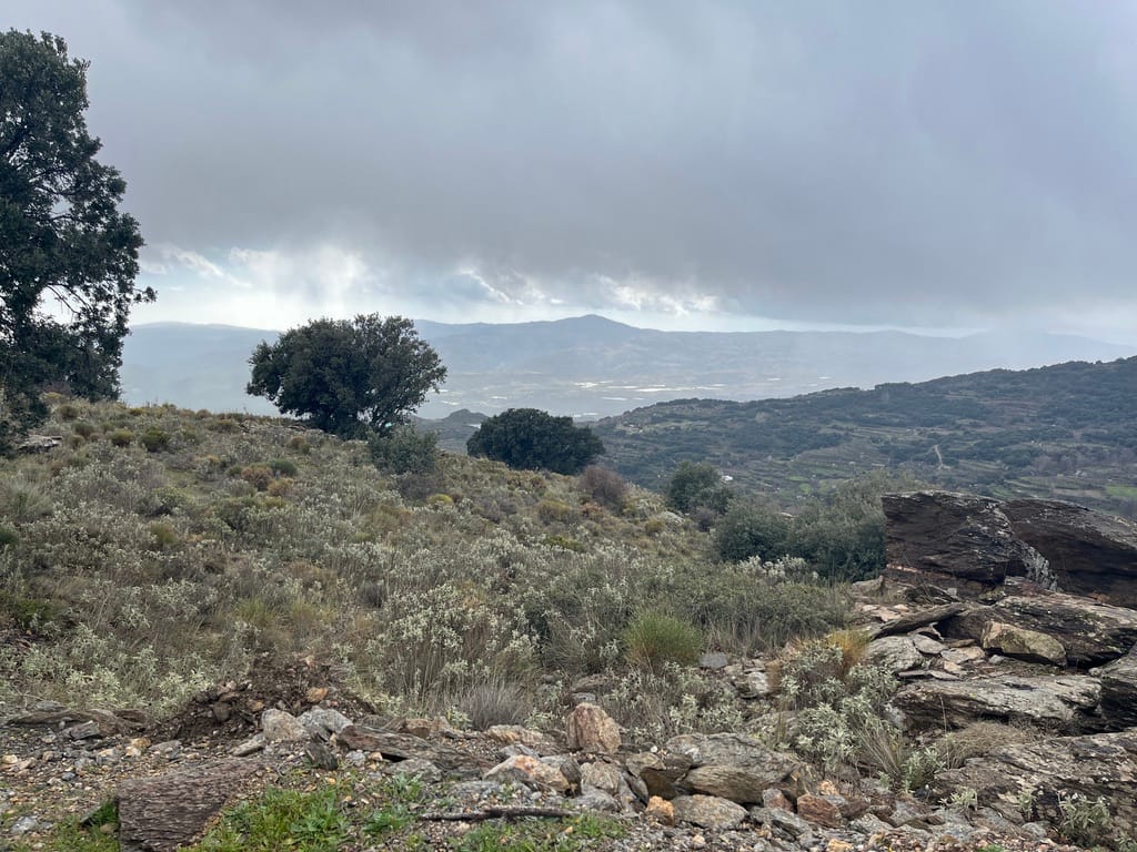 This morning I walked up into the high Alpujarras, where we scattered some of Dad’s ashes last year. He had always considered this part of the world his spiritual home, and the place we settled on overlooked a house he had restored by hand many years ago. I hadn’t expected to find anything there after all the winter weather, but I did — pale fragments against the earth, unmistakably him. I sat down next to him in the wind and the tiniest amount of sleet and talked to him for a while, as if he were just out of sight rather than gone. I’ll admit there was a bit of ugly crying at times, but then I told him about the mulberry tree that’s coming, about the orchard, and about the community who’ll help plant it. I told him how much I loved him and how much I hoped he was at peace. When I stood up again, it was the calmest I had felt in days.